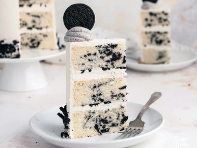 Oreo loaded vanilla cake, layered with vanilla American buttercream.